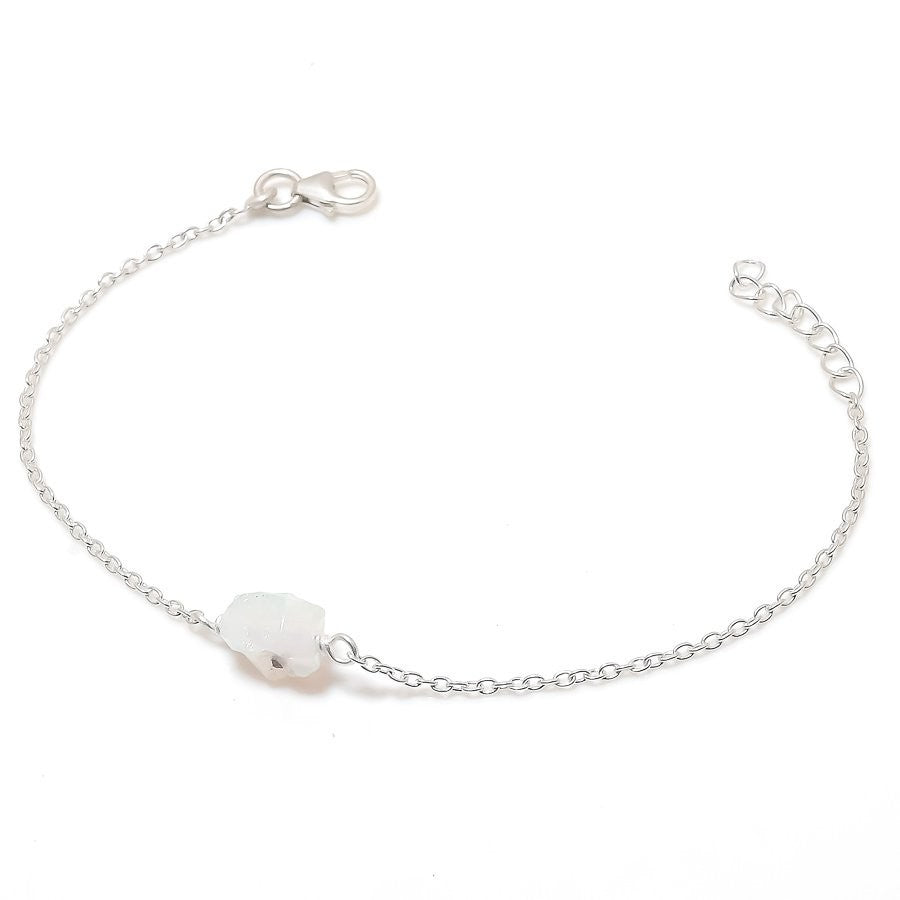 Rainbow Moonstone Gemstone 925 Silver Anniversary Chain Birthday Wife Bracelet