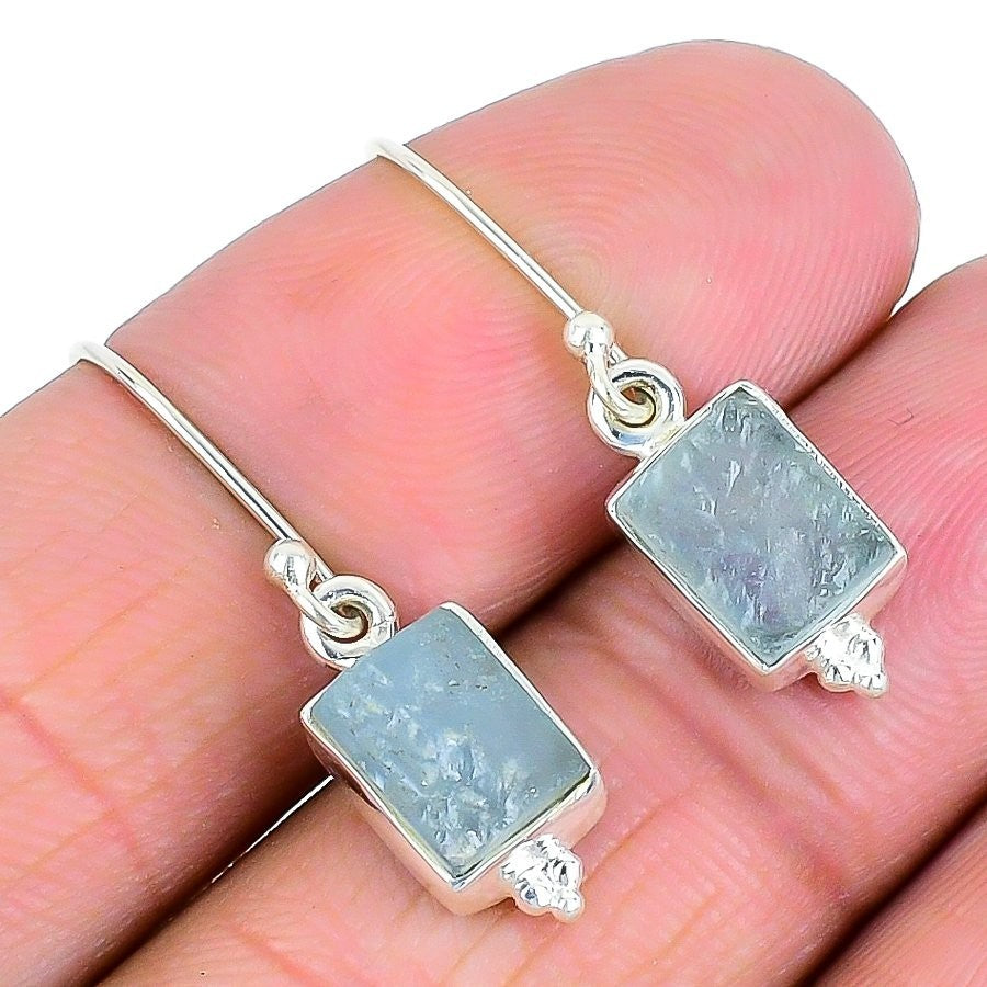Natural Aquamarine Drusy Stud Post Wedding Earrings Jewelry 925 Sterling Silver