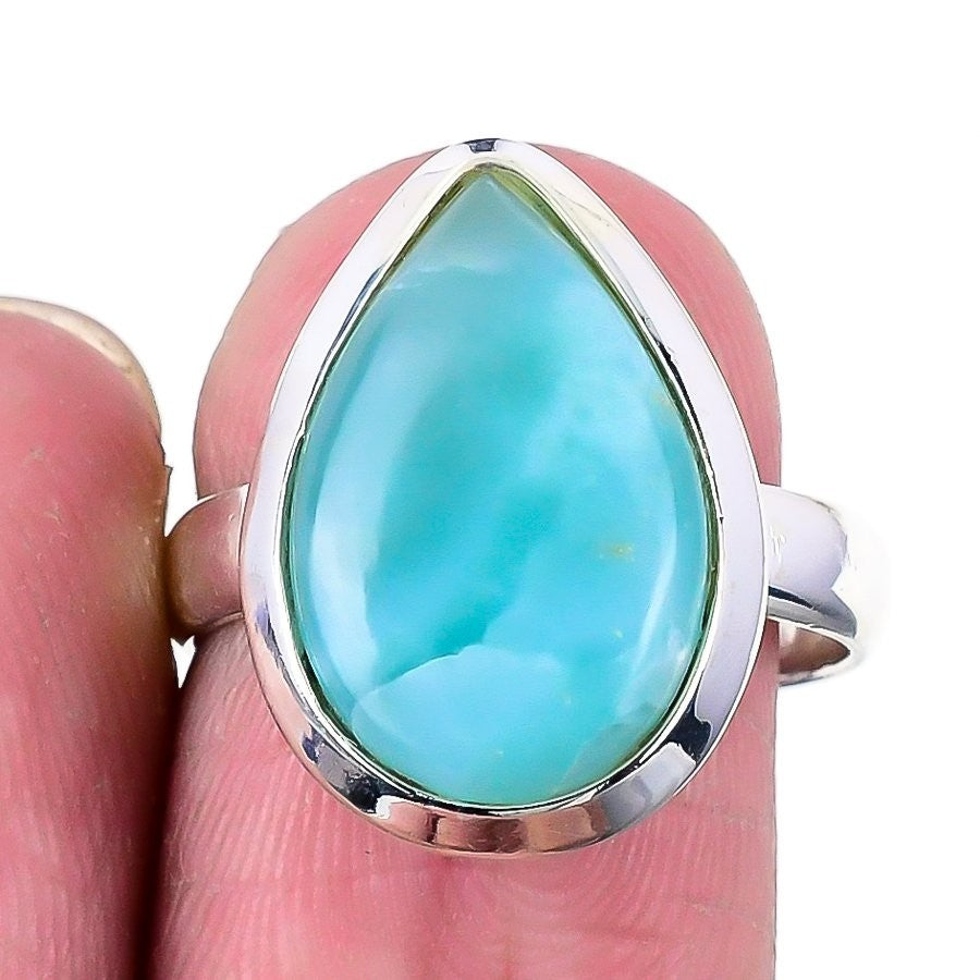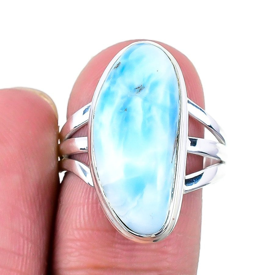 Republic Larimar Stone Solid Silver Engagement Wife Cluster Ring Jewelry Size 8