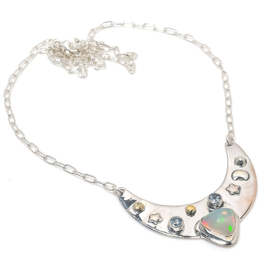 Ethiopian Opal Stone Engagement Chain Elegant Birthday Necklace 925Ā SolidĀ Silver