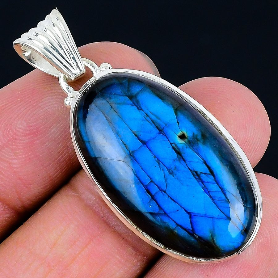 Third Eye Chakra Labradorite Gemstone 925Ā SolidĀ Silver Unique Pendant Jewelry