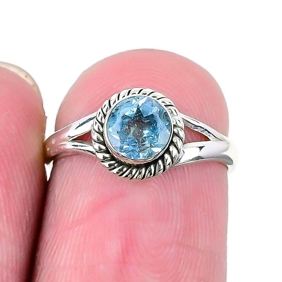 Swiss Blue Topaz Stone 925 Sterling Silver Handmade Cluster Wedding Ring Jewelry