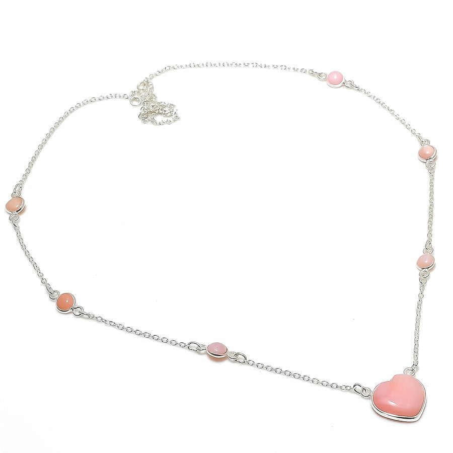 Pink Opal Gemstone Sterling Silver Mother Chain Handcrafted New Necklace Jewelry