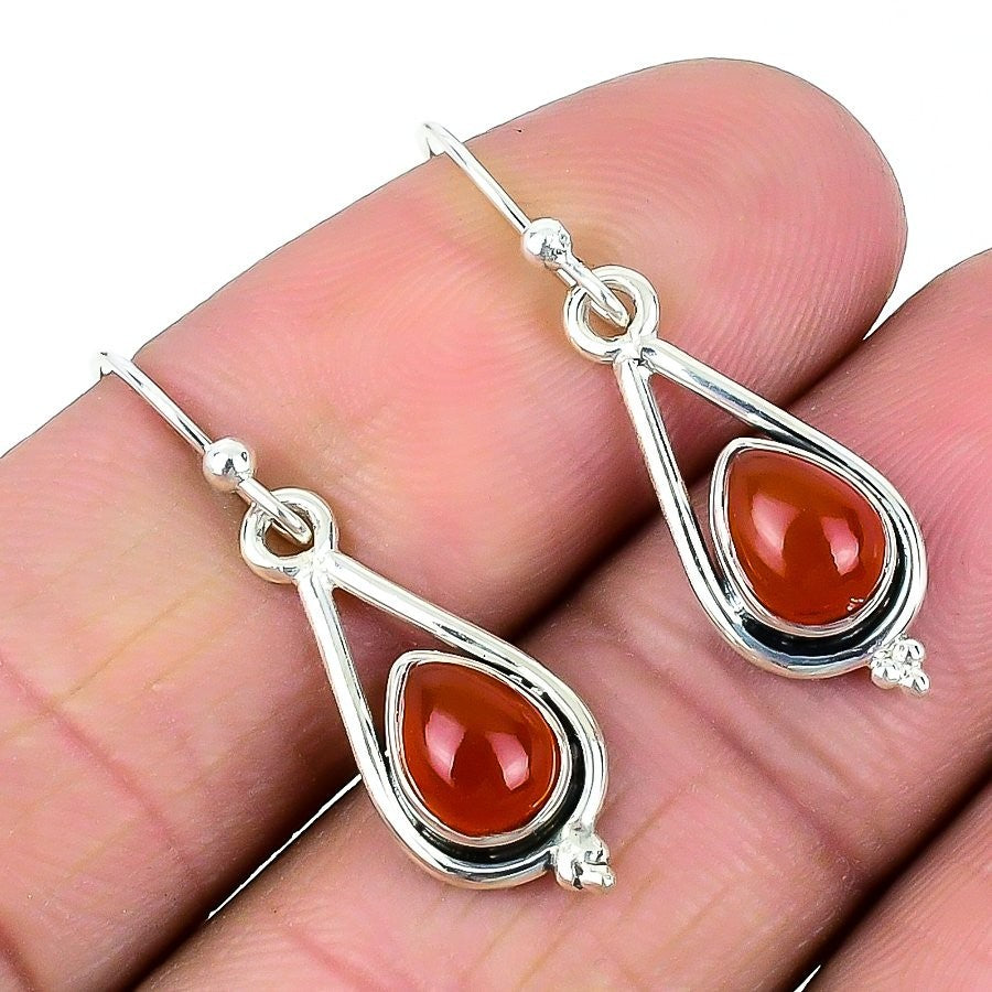 Red Carnelian Gemstone Solid Sterling Silver Dangling Handmade Earrings Jewelry