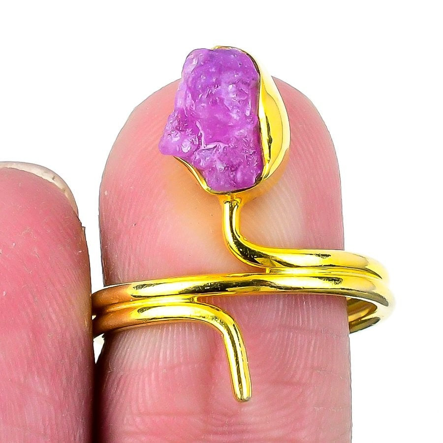 Pink Tourmaline Stone Ethnic Cluster Art Deco Boho Ring Jewelry 925Ā SolidĀ Silver