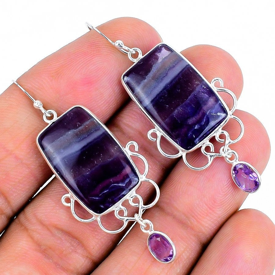 Fluorite Stone Solid Sterling Silver Hook Handcrafted Engagement Drop Earrings