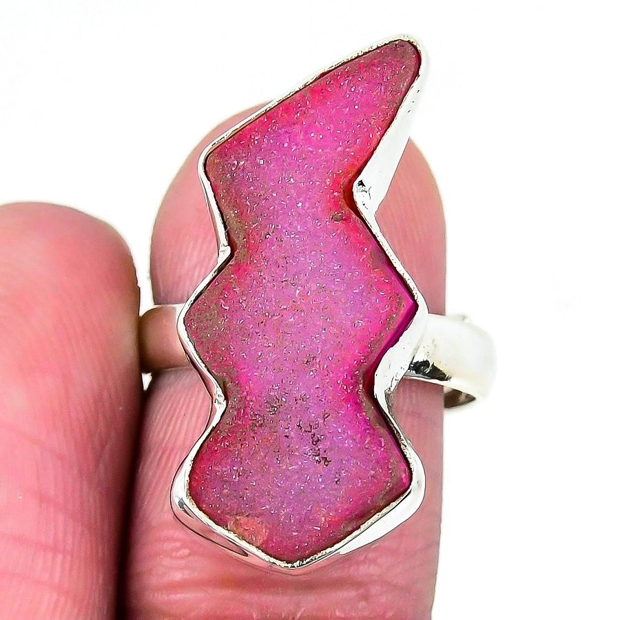 Pink Titanium Druzy Gemstone Sterling Silver Cluster Daughter Gift Ring Jewelry