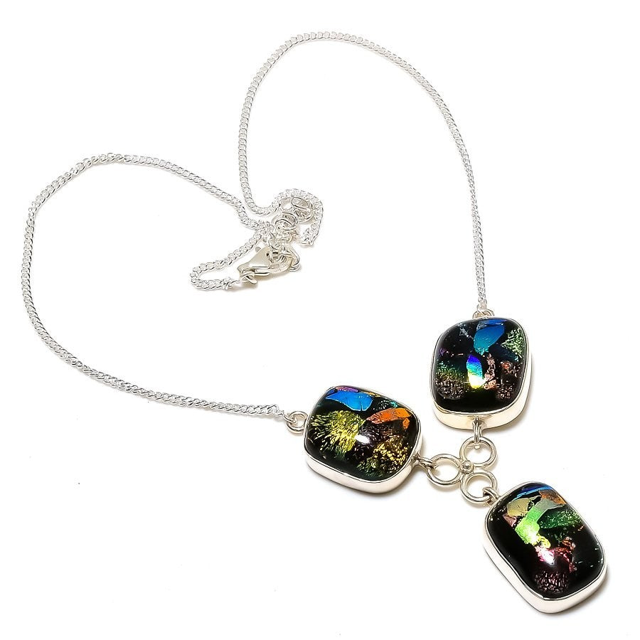Mexican Dico Glass Stone Solid Sterling Silver Chain Wedding Necklace Jewelry
