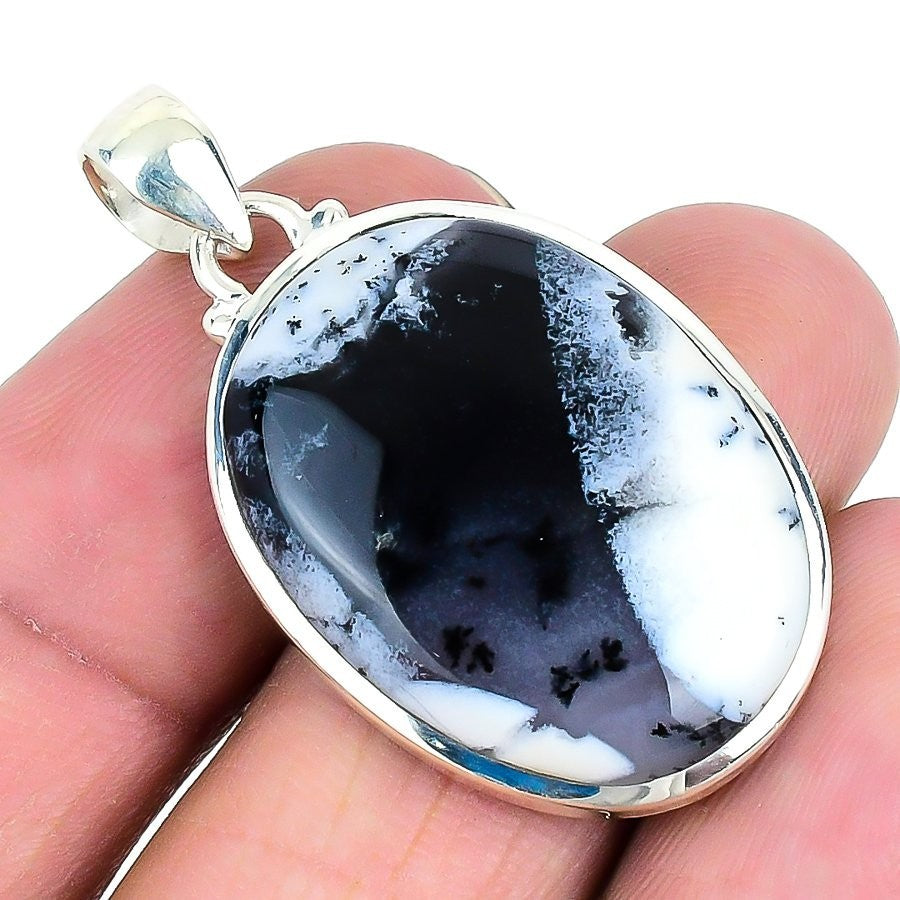 Dendrite Opal Stone Sterling Silver Handmade Anniversary Art Deco Sister Pendant