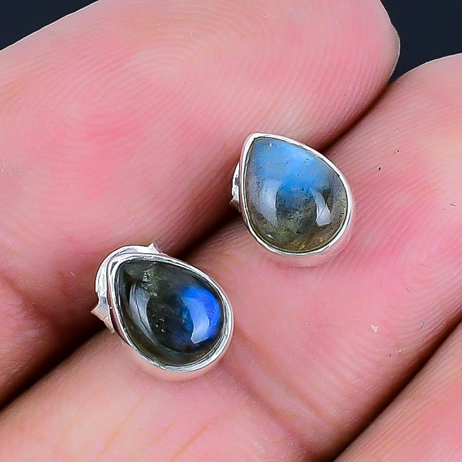 Natural Labradorite Artisan Birthday Stud Post Boho Earrings 925 Sterling Silver
