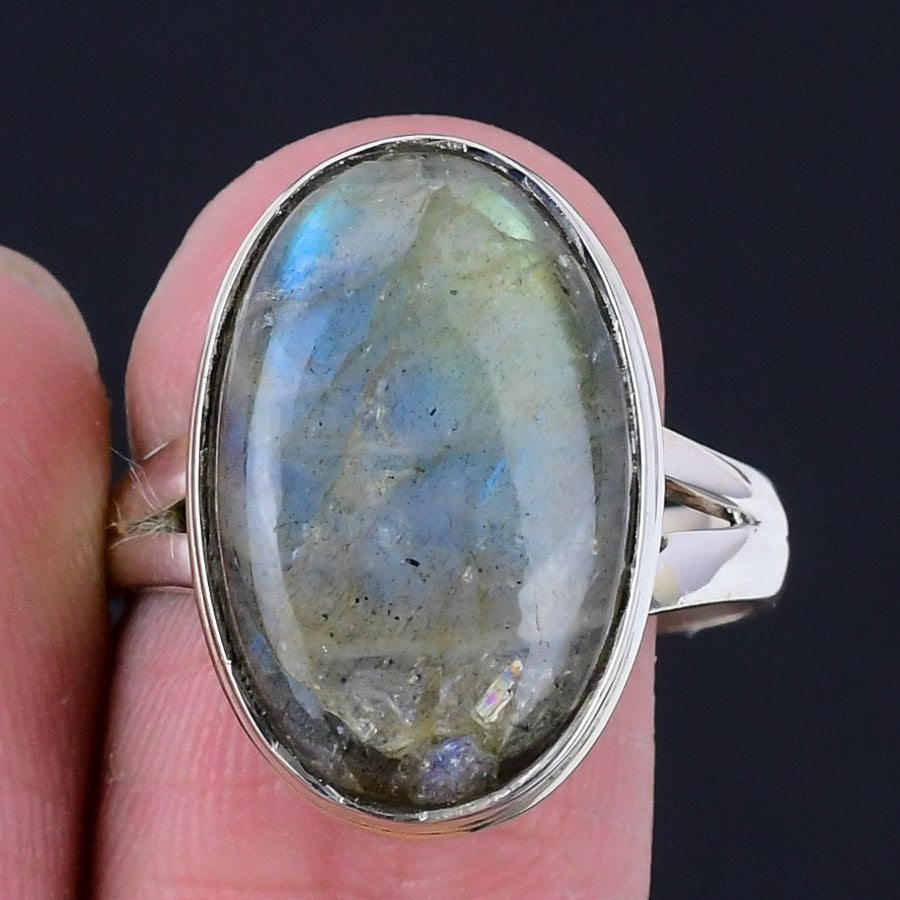 Natural Labradorite Channel Set Cluster Handmade Ethnic Ring Jewelry 925 Silver