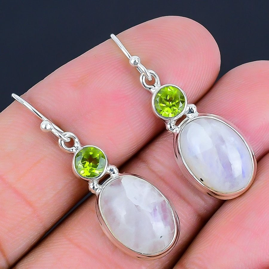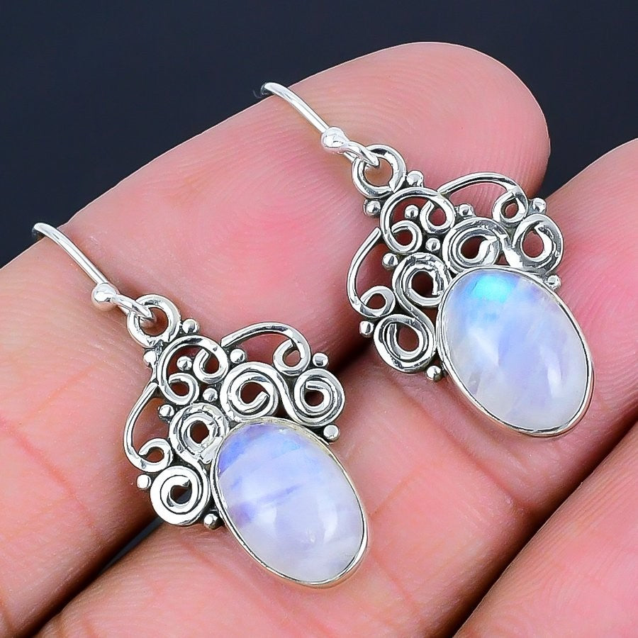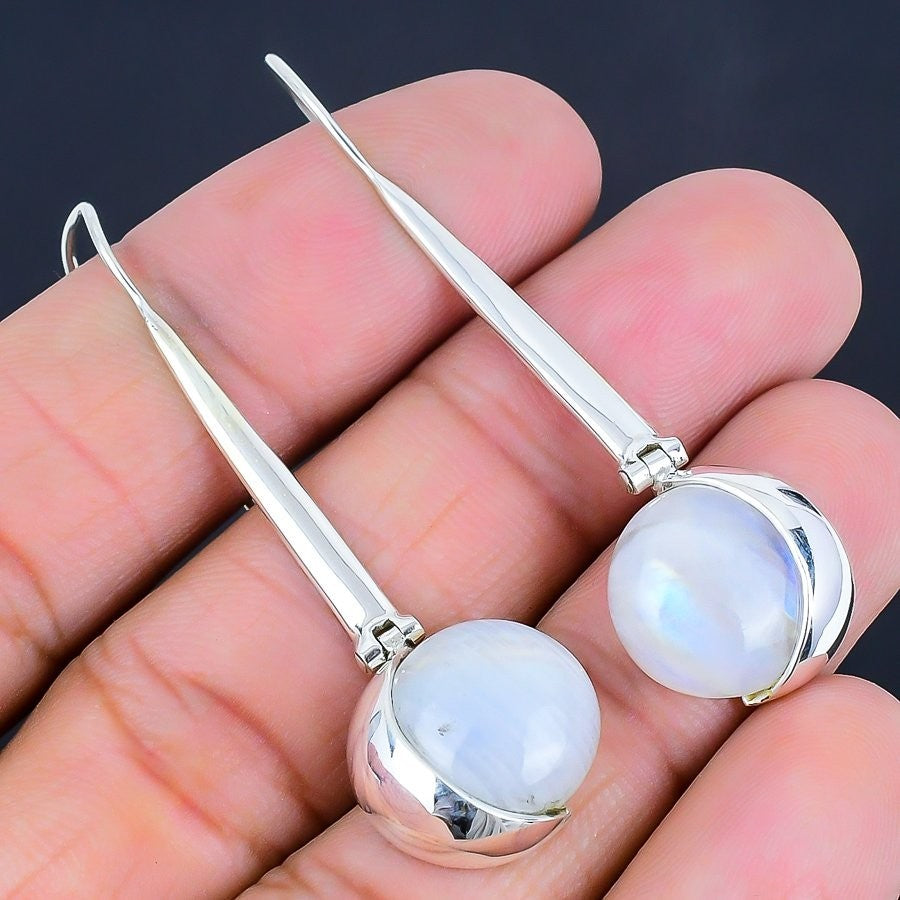 Rainbow Moonstone Gemstone Solid Sterling Silver Trendy Dangling Unique Earrings