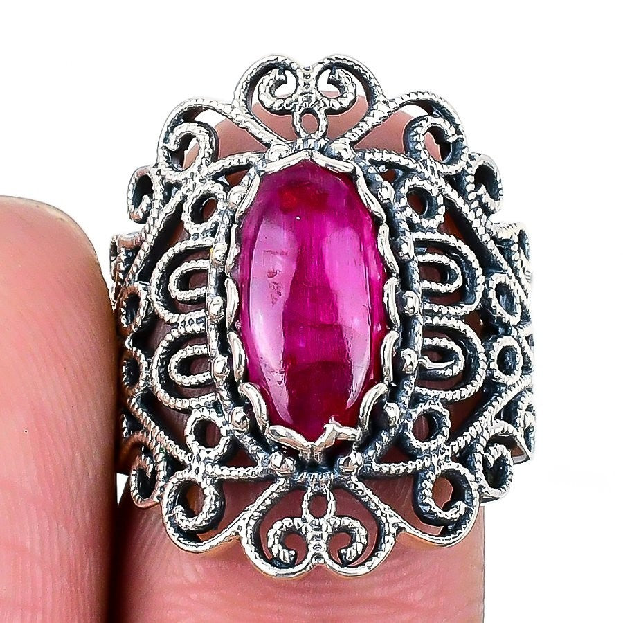 Kashmir Red Ruby Stone 925 Sterling Silver Artisan Statement Ring Jewelry Size 8