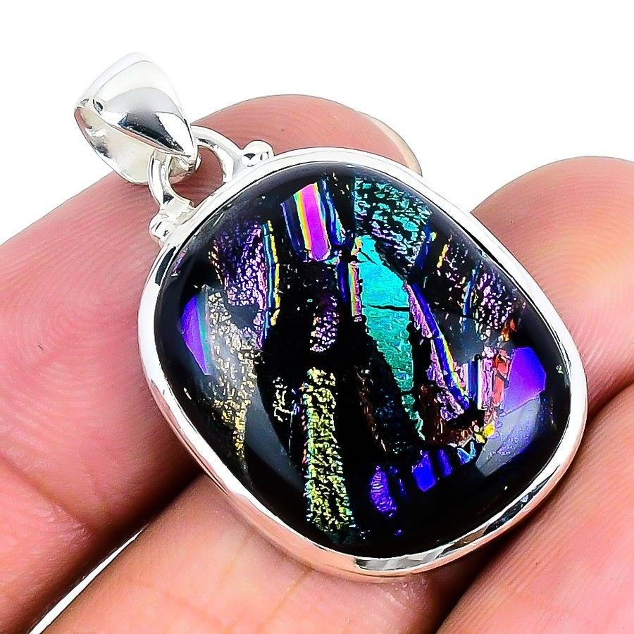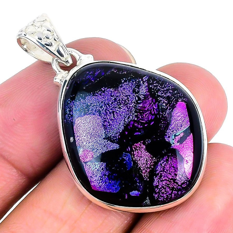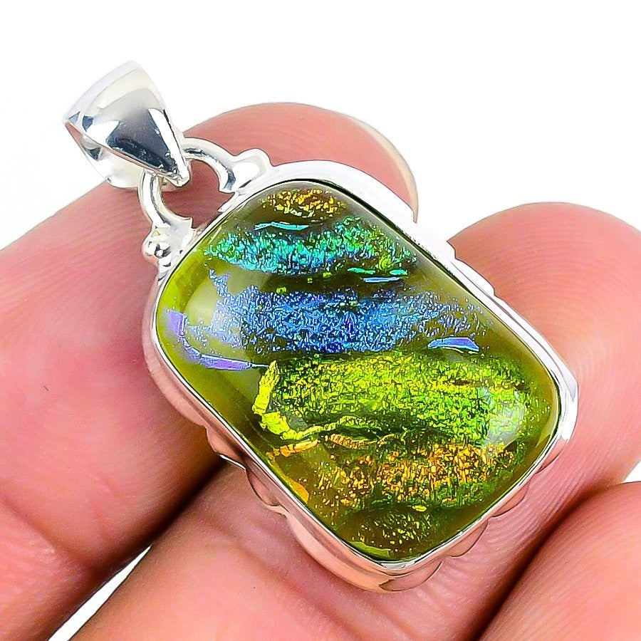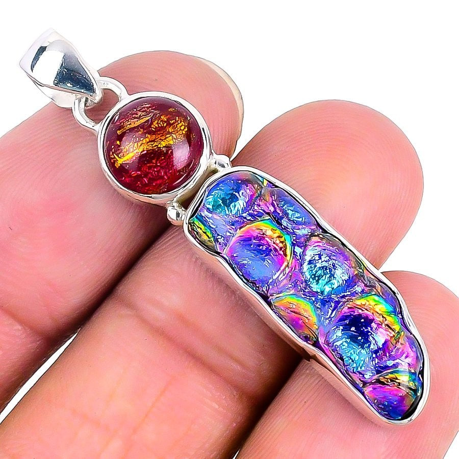 Mexican Dico Glass Gemstone 925Ā SolidĀ Silver Bezel Elegant Wife Pendant Jewelry