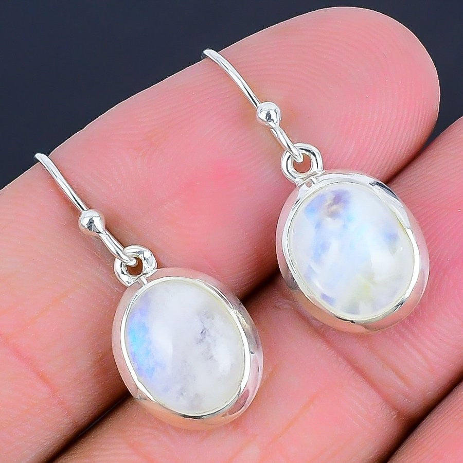 Rainbow Moonstone Gemstone Sterling Silver Trendy Dangle Mother Earrings Jewelry