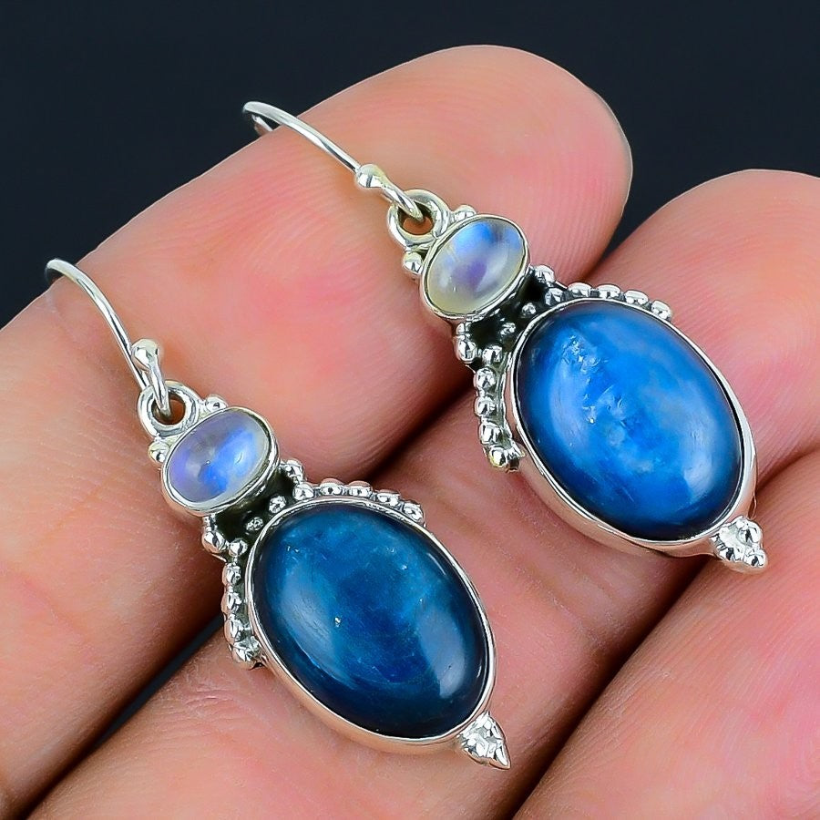 Blue Kyanite Gemstone Solid Sterling Silver Unique Dangle Drop Bezel Earrings