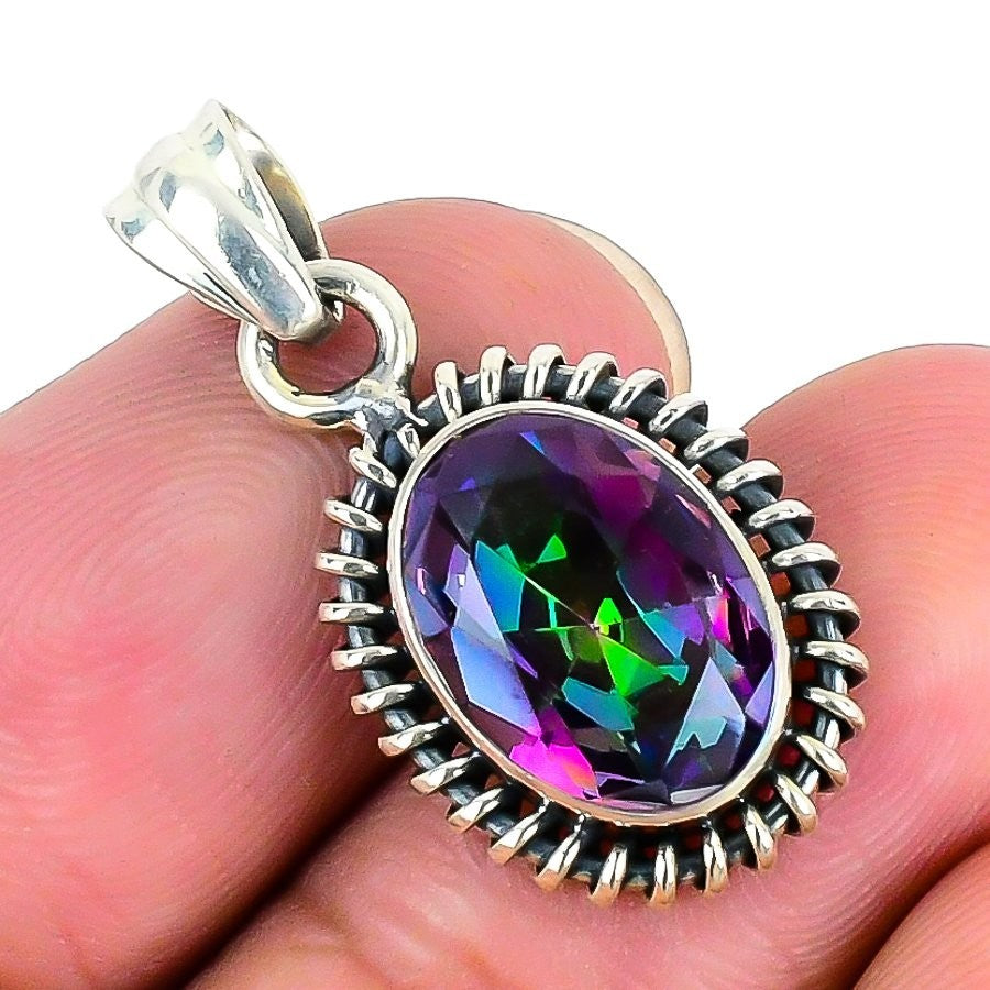 Rainbow Mystic Topaz Stone Solid Silver Sister Unique Handcrafted Bezel Pendant