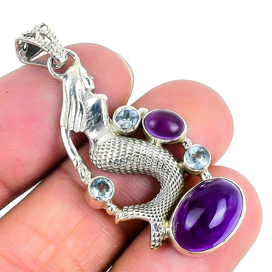 Sage Amethyst Gemstone Solid Sterling Silver Wedding Sister Crown Chakra Pendant