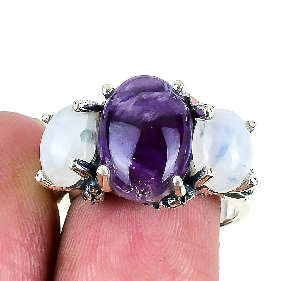 Crown Chakra Rainbow Moonstone Gemstone 925Ā SolidĀ Silver New Statement Ring US 8