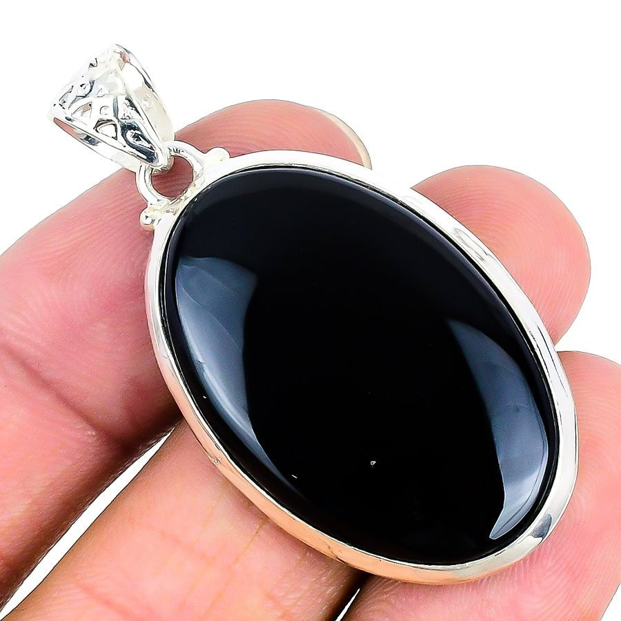 Root Chakra Natural Black Onyx Trendy Bezel Pendant Jewelry 925 Sterling Silver