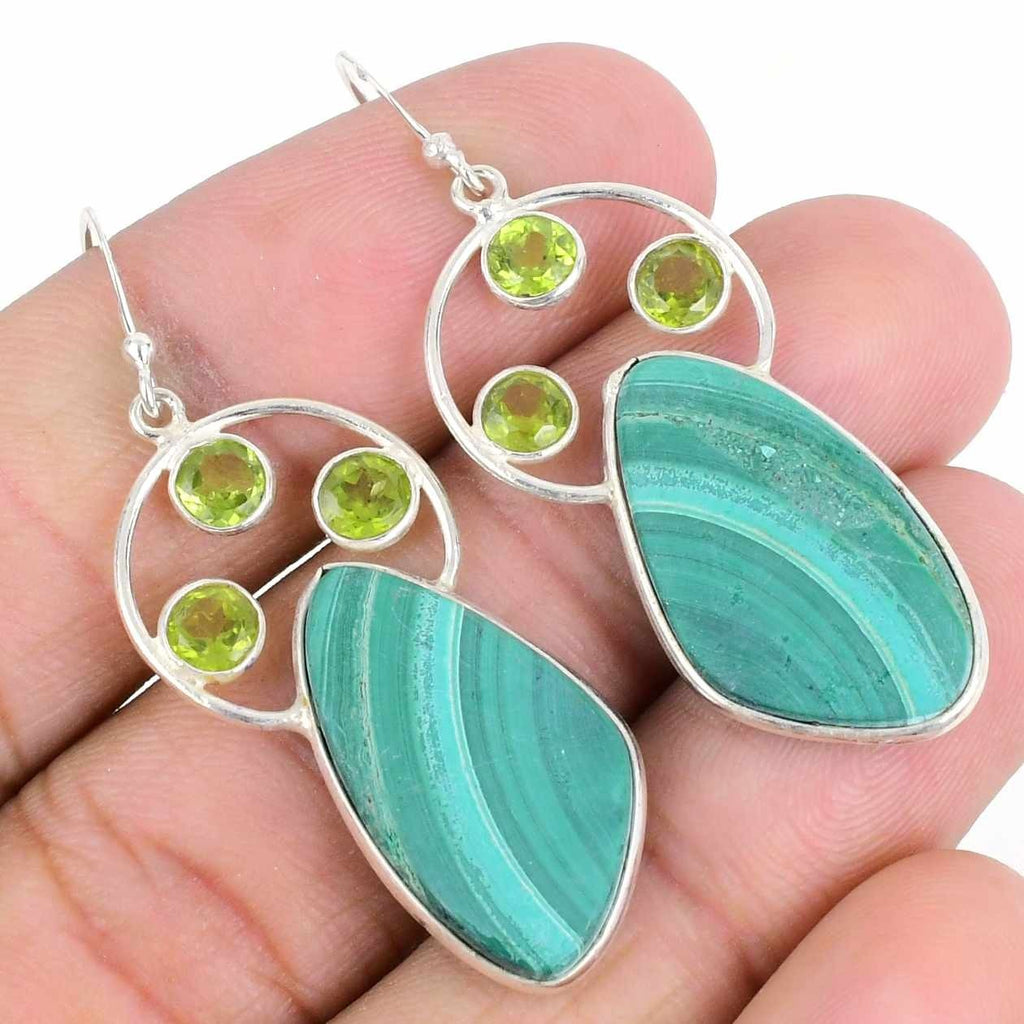 Malachite & peridot Gemstone Solid Sterling Silver Hook Dangle Earrings Jewelry