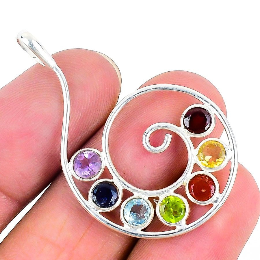 Daughters Day Sale Seven Chakra Gemstone Sterling Silver Sister Pendant Jewelry