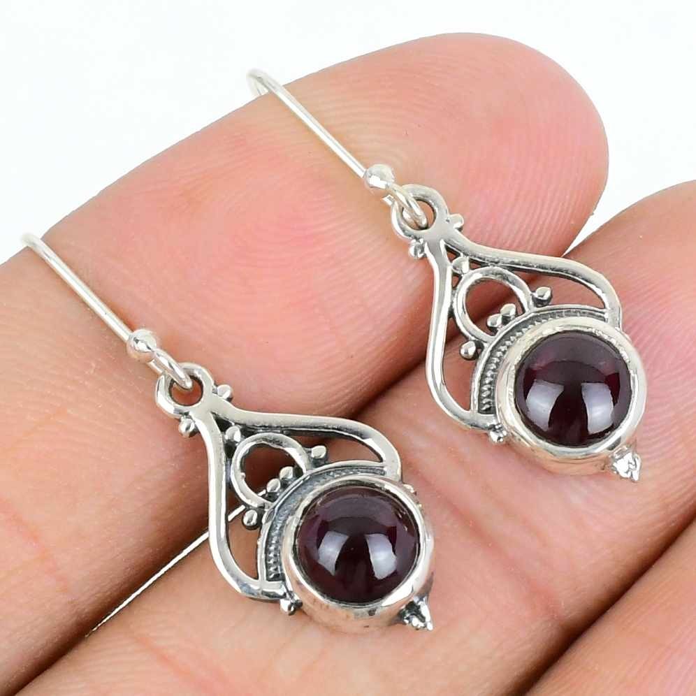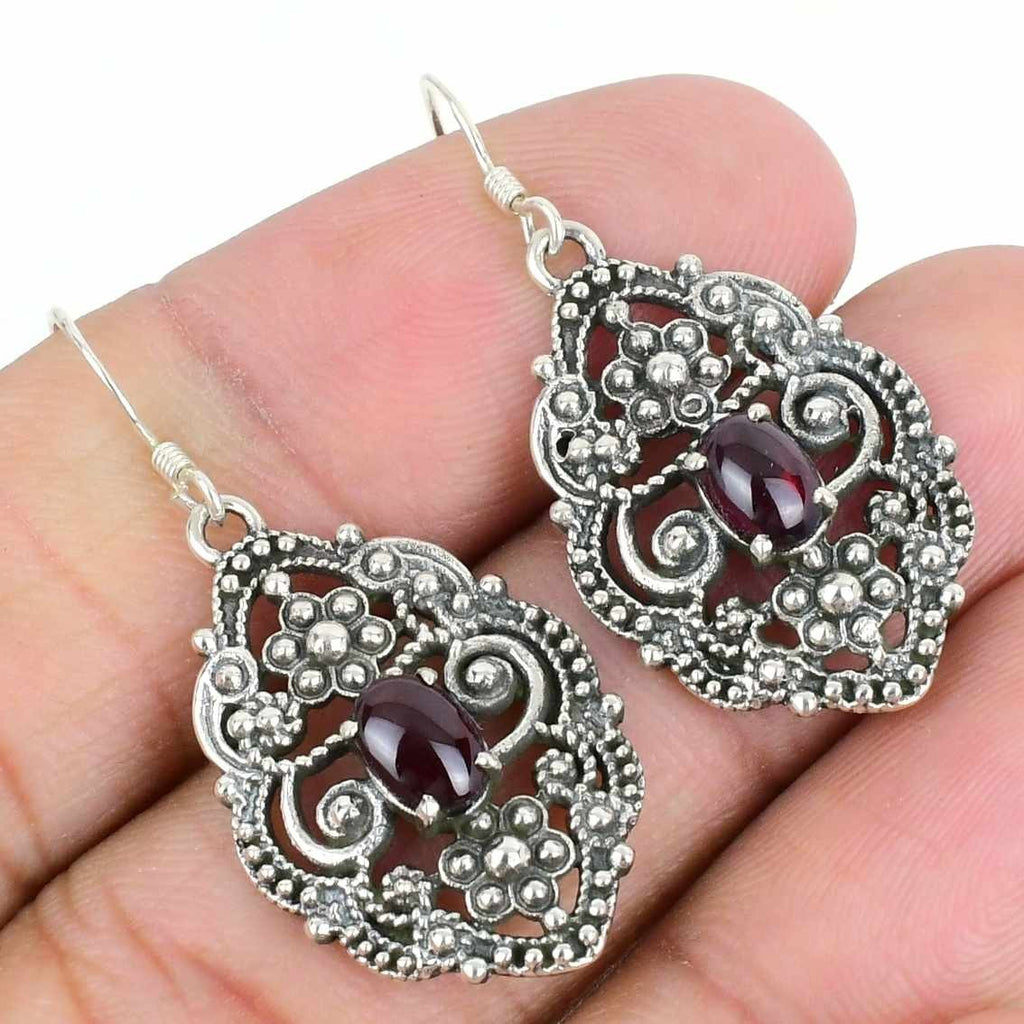 Garnet Stone Solid Silver Art Deco Mother Handmade New Dangling January Earrings