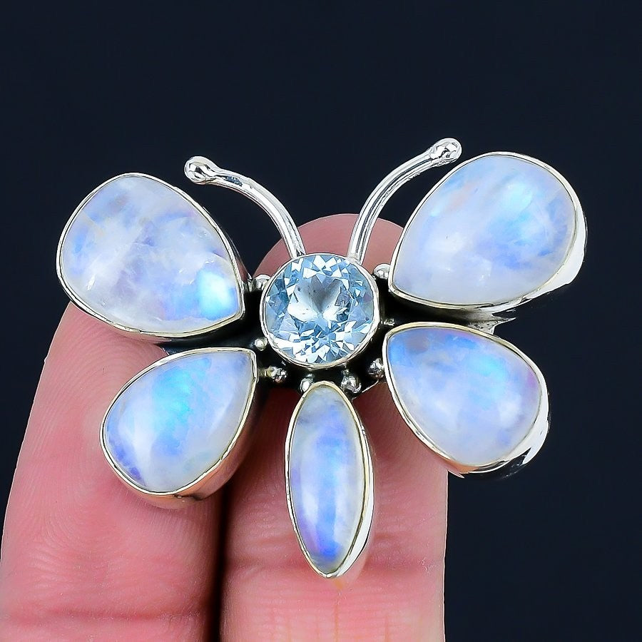 Rainbow Moonstone Stone Solid Sterling Silver Wedding New Statement Ring Jewelry