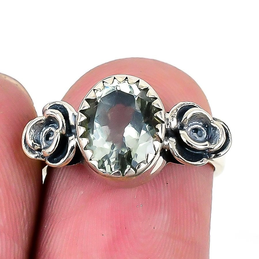 Green Amethyst Stone 925 Sterling Silver Wife Statement Anniversary Ring Size 6