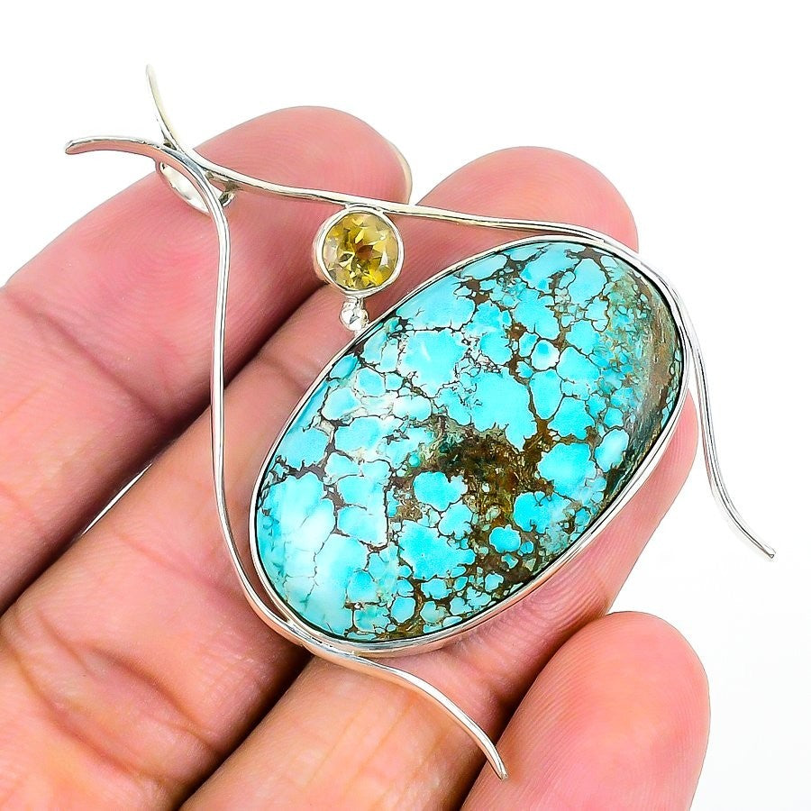 Throat Chakra Natural Tibetan Turquoise 925 Sterling Silver Wife Pendant Jewelry