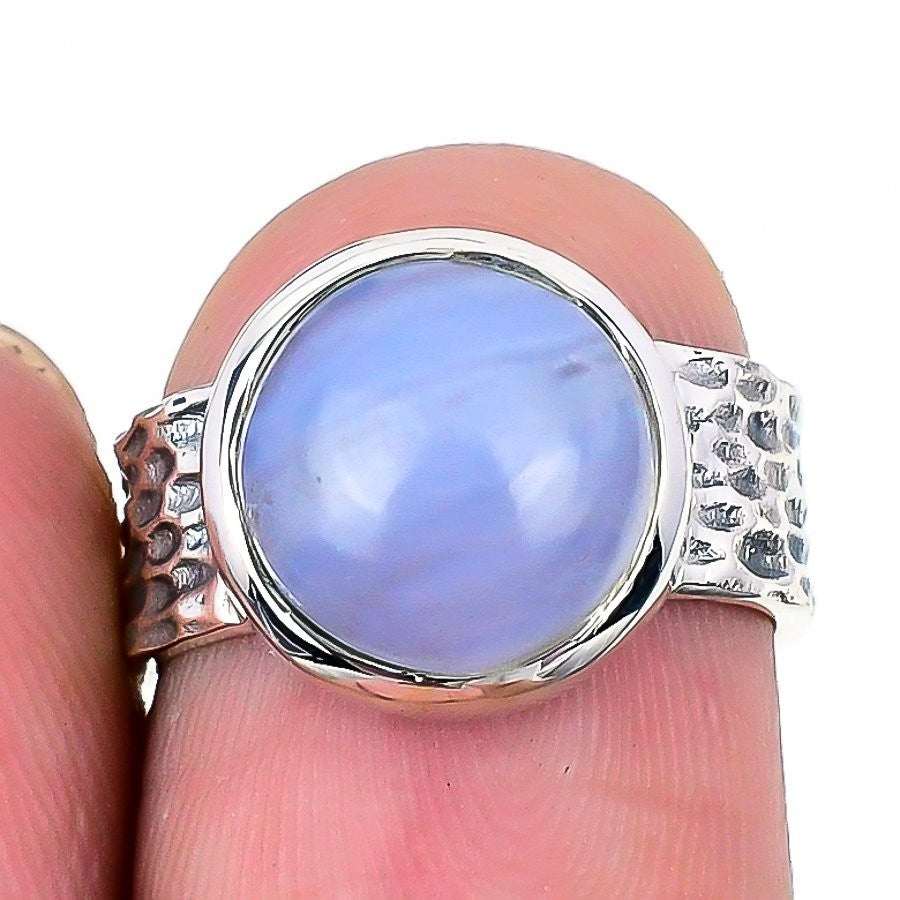 Natural Blue Lace Agate Anniversary Statement New Ring Jewelry 925 Silver US 5.5