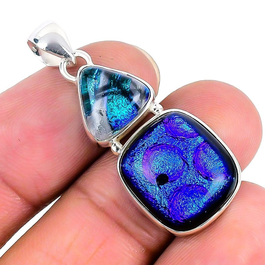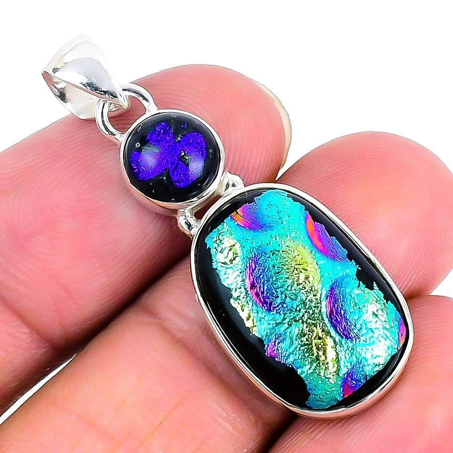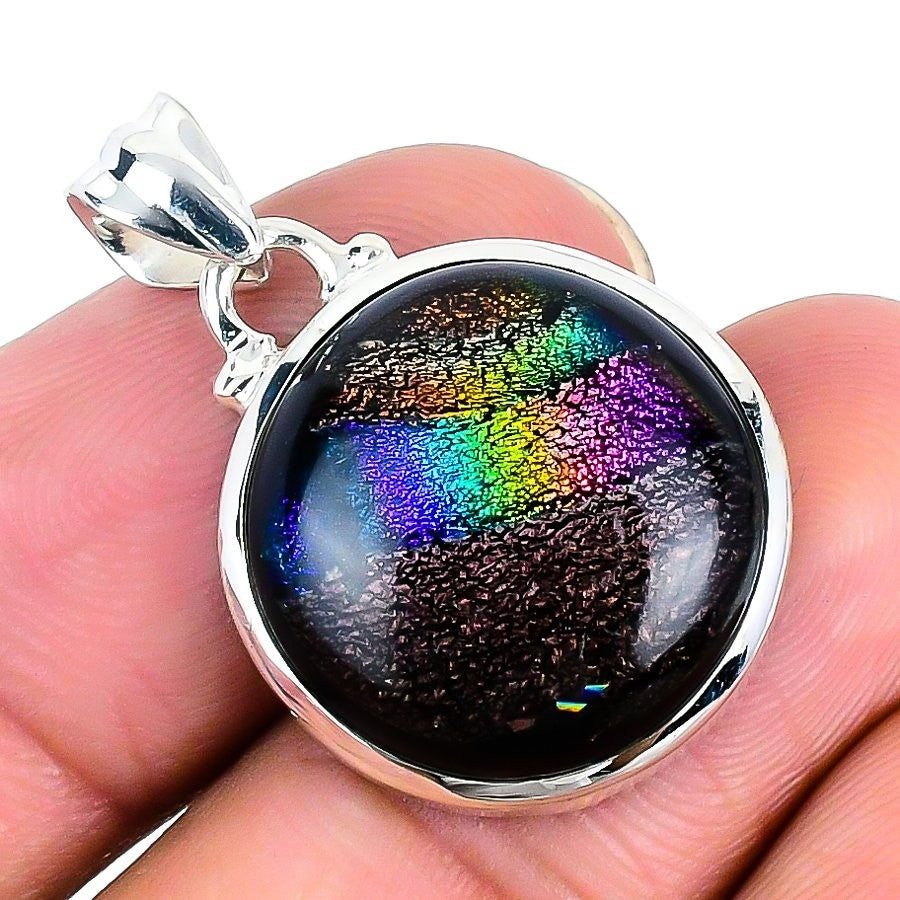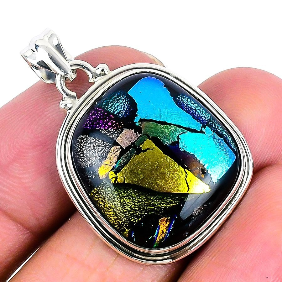 Mexican Dico Glass Gemstone 925 Sterling Silver Elegant Bezel Pendant Jewelry