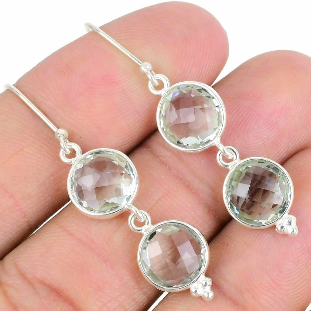 Green Amethyst Gemstone Hook Wife Drop Dangle Daughters Day Earrings 925 Silver
