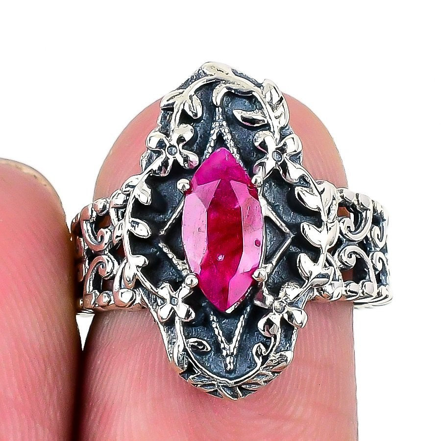 Natural Kashmir Red Ruby Solid Sterling Silver Statement New Ring Jewelry Size 7