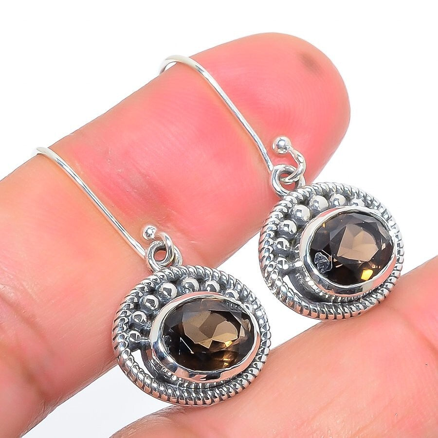 Smoky Topaz Gemstone Solid Sterling Silver Wife Hook Dangling Earrings Jewelry