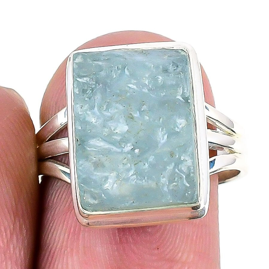 Aquamarine Gemstone Statement Engagement Birthday Ring 925 Sterling Silver US 8