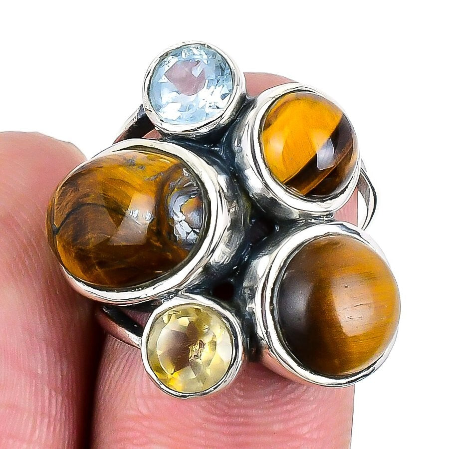 Tiger Eye Gemstone Sterling Silver New Statement Sacral Chakra Ring Jewelry US 7