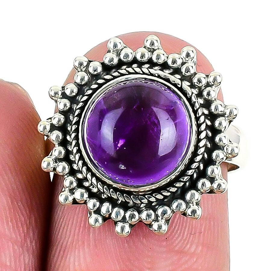 Sage Amethyst Stone Solid Silver Mother Statement Crown Chakra Ring Jewelry US 7