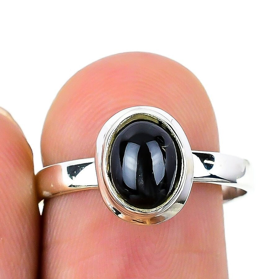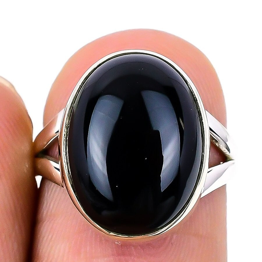 Root Chakra Black Onyx Gemstone 925 Sterling Silver Statement Birthday Ring US 6