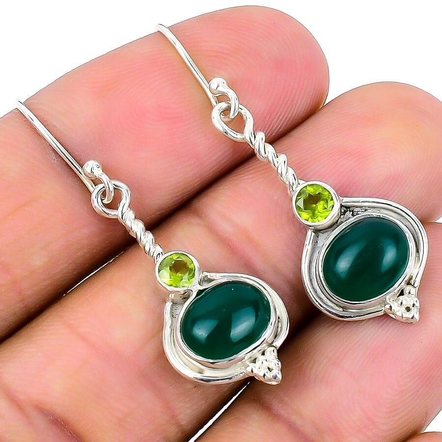 Green Onyx Stone Birthday Sister New Artisan Drop Earrings Solid Sterling Silver