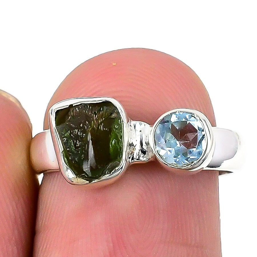 Natural Moldavite 925 Sterling Silver Mother Statement Handcrafted Ring Size 6.5