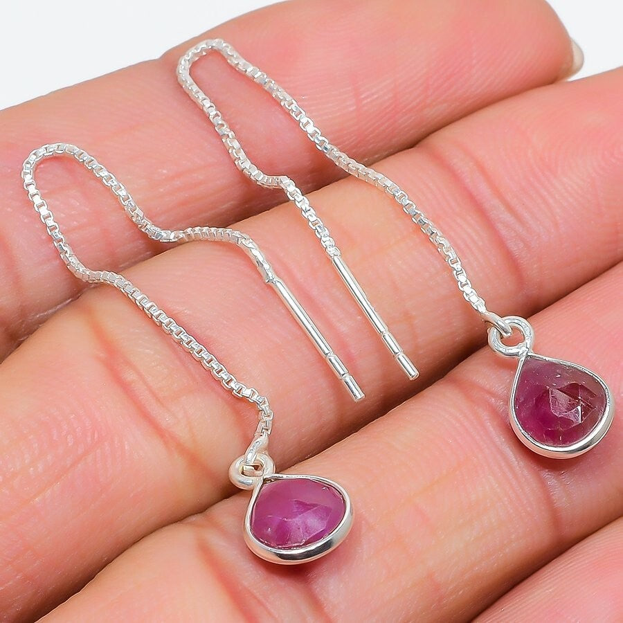Natural Ruby Zosite Dangle Hook Art Deco Wife Earrings Jewelry Sterling Silver
