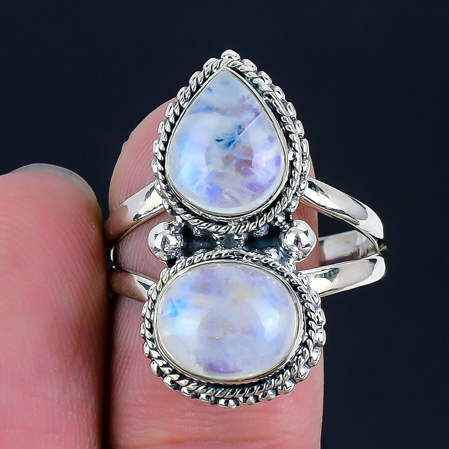 Natural Moonstone 925 Silver June Birth New Statement Wife Ring Jewelry Size 11