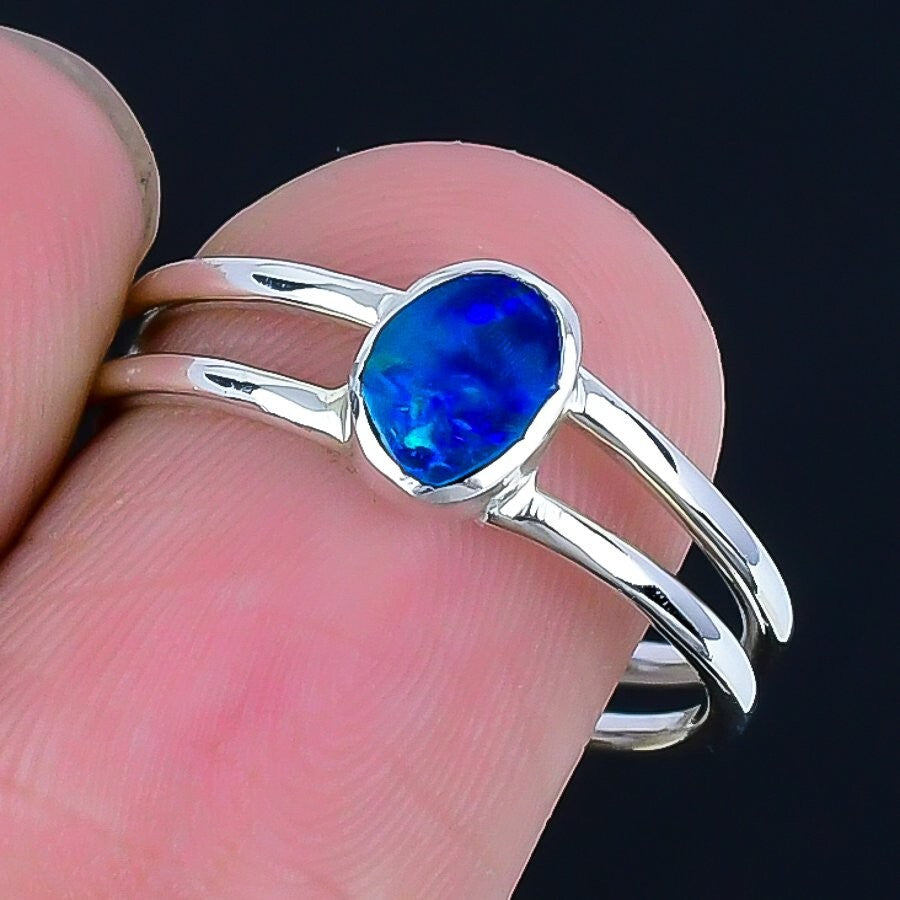 Natural Australian Opal Solid Sterling Silver Cluster Mother Wedding Ring Size 9