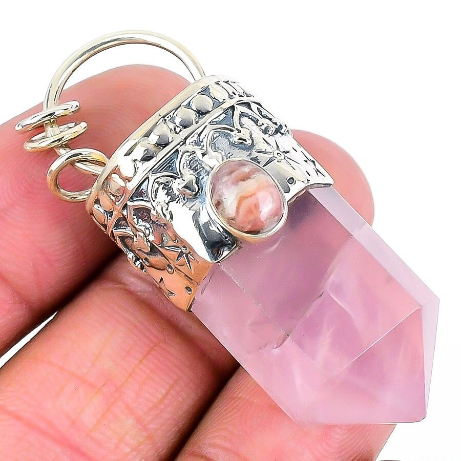 Rose Quartz Stone 925 Sterling Silver Daughter Heart Chakra New Pendant Jewelry