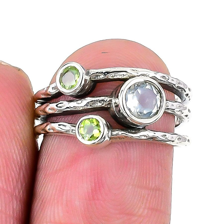 Green Tourmaline Stone Anniversary Boho Statement Ring 925Ā SolidĀ Silver US 6.5