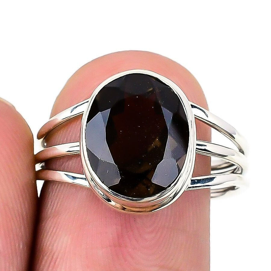 Mothers day Deal Smoky Topaz Stone Art Deco Boho Statement Ring 925Ā SolidĀ Silver