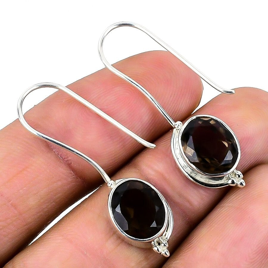 Smoky Topaz Stone Solid Silver Elegant Ethnic Drop Dangle Hook Earrings Jewelry