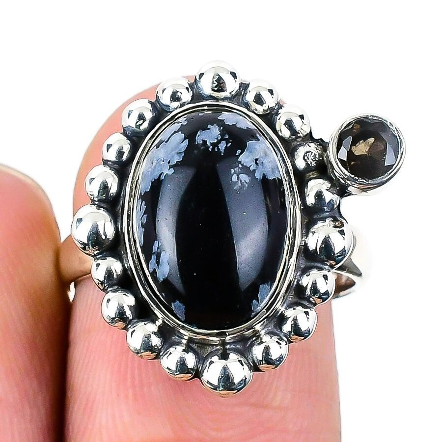 Natural Snoflake Obsidian 925 Silver Statement Mothers Gift Sister Ring US 7.5