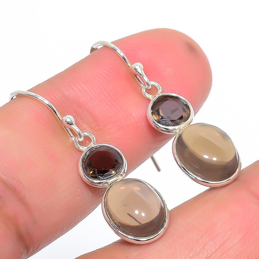 Smoky Topaz Stone 925Ā SolidĀ Silver Sister New Drop Dangle Handmade Hook Earrings